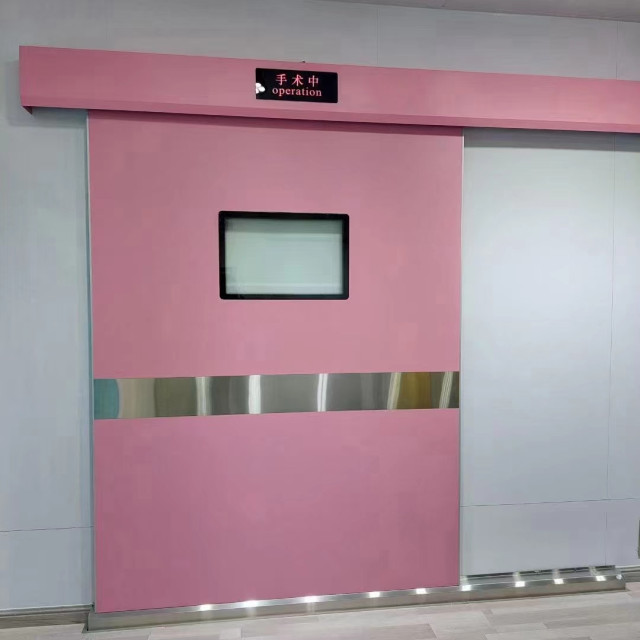 8 醫院防輻射鉛門,門體加貼防輻射標志并在防護門上方加裝指示燈提醒人員注意射線防護!電動推拉防護門可加裝門機聯鎖裝置,防護門關閉不嚴時*機械無法啟動以確保人員安全。