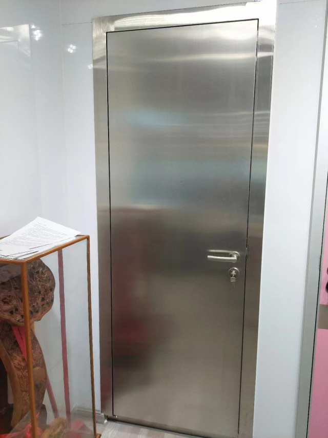 6煙臺加速器防護鉛門,外飾面采用304不銹鋼,既使防護門外飾美觀,又增加了防護門的防撞性能和機械強度。
